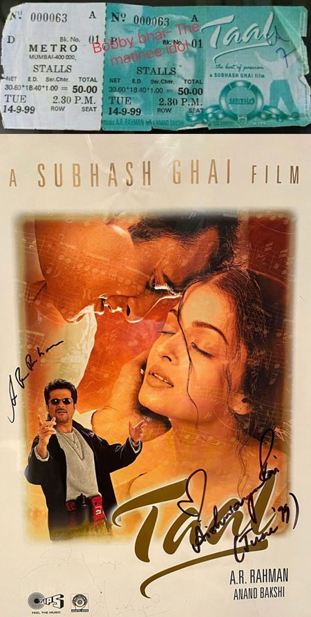 "Receiving a cinema ticket of Metro theatre for my film, Taal (1999), with the director's name printed on it, recognising the creative team of a motion picture, was a great surprise for me. I am confident that a time will come when movie directors will be recognised for their contributions to cinematic magic again."