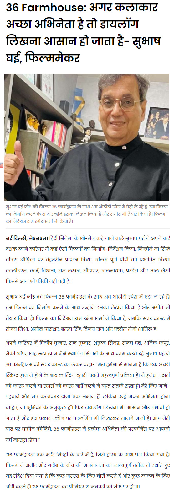 36 Farmhouse: If an actor is good it's easy to write dialogues - Subhash Ghai