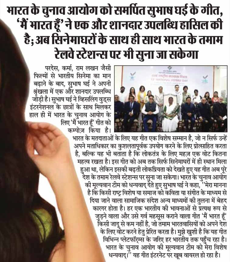 Subhash Ghai's song 'Main Bharat Hoon' dedicated to the Election Commission of India now to be played in all railway stations of India