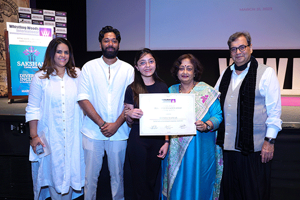 PRADIP GUHA SCHOLARSHIP for a brilliant student in Media & Entertainment was instituted at Whistling Woods International yesterday. It is a matter of our great pride and love for our media guru 'PG' - our ex-director on board - a guide friend to our growth at Mukta Arts Ltd. We are Happy that Mrs Papiya Guha and Sanket Guha graced the event and awarded first scholarship to our deserving student Brinda Maniar, a WWI Student from the Dept. of Media & Communication pursuing the MBA in Media & Entertainment programme at whistlingwoods.