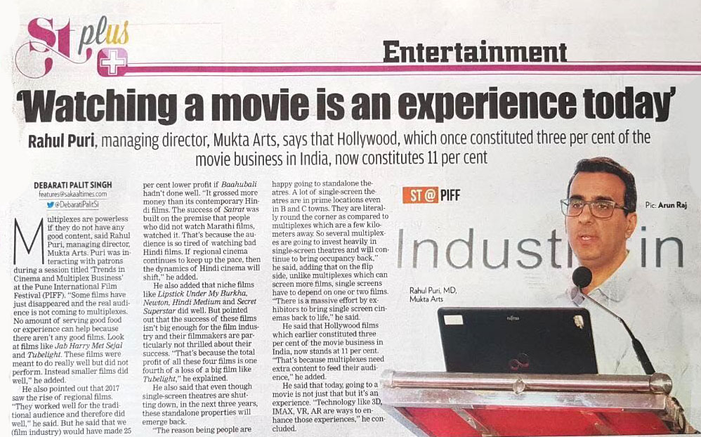 Mr.Rahul Puri shared his views on Trends in the Cinema Business at the Pune International Film Festival 2018