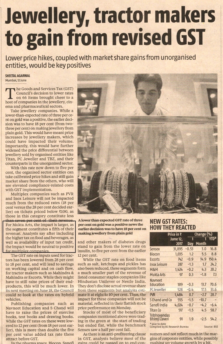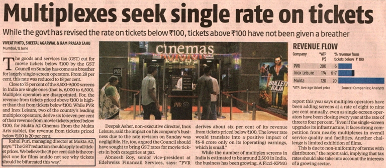 Mr. Rahul Puri MD. Mukta Arts & Mukta A2 Cinemas shares his views on revised GST rate on ticket prices for multiplexes