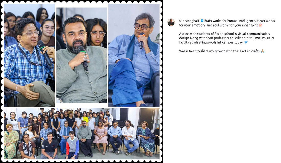 "Best of directors connecting to students of Whistling Woods International and sharing their experiences. Blessed." - Subhash Ghai