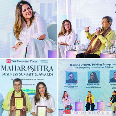 "Thank #Economic Times at Maharashtra Business Summit and Awards for honouring me and my daughter Meghna Ghai with these awards amongst other esteemed pillars in building Maharashtra state and India. I agree with Meghna, the President of Whistling Woods International, when she said that we nurture our students with the power of storytelling in any field with a big change in technology and communication coming in the future." - Subhash Ghai