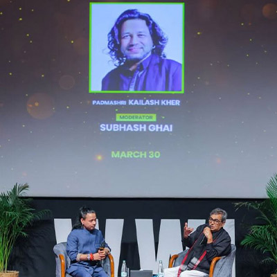 "Kailash Kher - a leading divine singer who brought millions of Gen Z to start the revolution of divine music in India, and it’s happening all over - a march to spirituality. Kailash Kher rocked on the stage of Whistling Woods International at the inaugural event of Cadence Music Festival yesterday as #DivineJammers and shared his wisdom and humorous anecdotes with students and sang with music students, bringing ecstasy to no end. Fantastic experience. Thank you, Kailash ji. Blessings." - Subhash Ghai